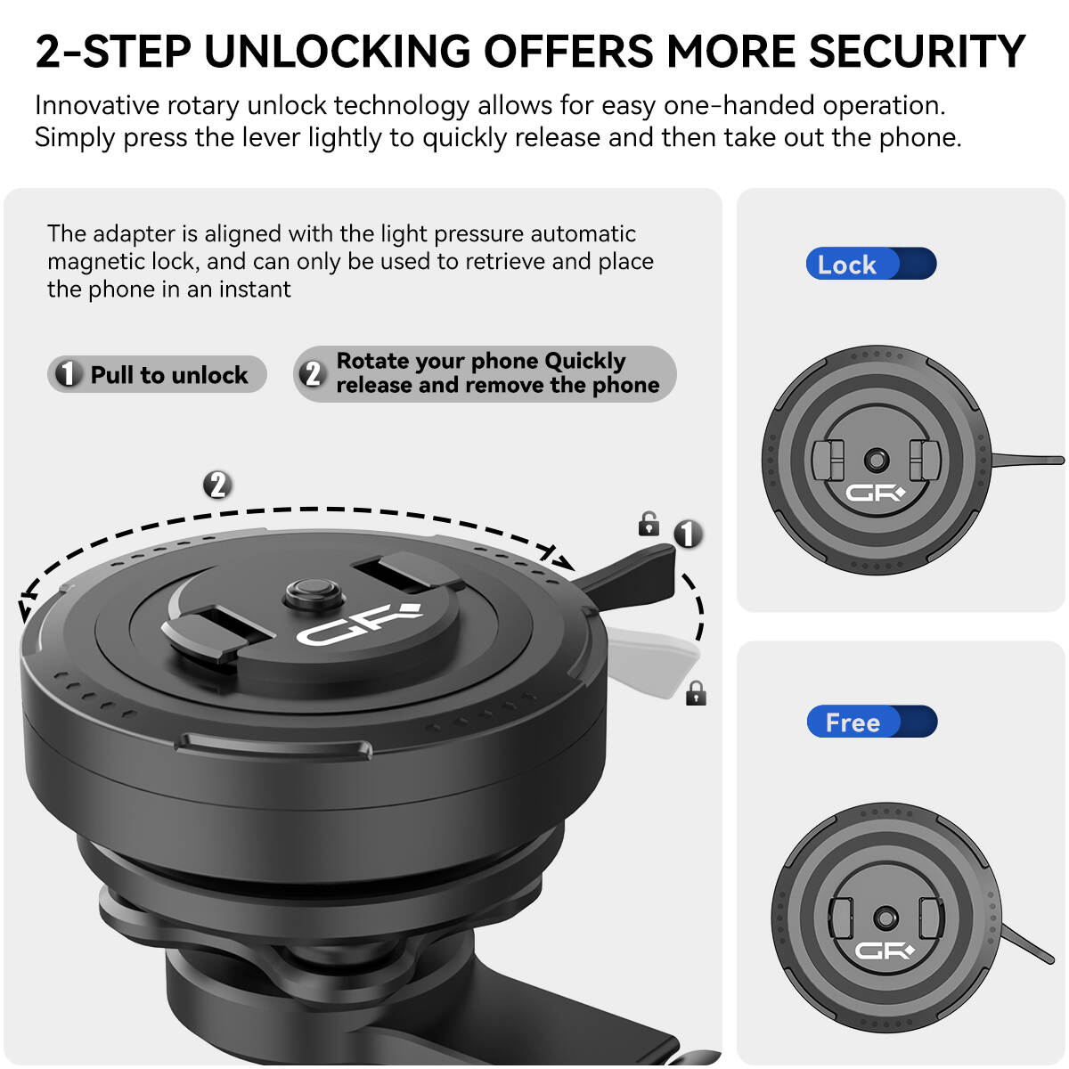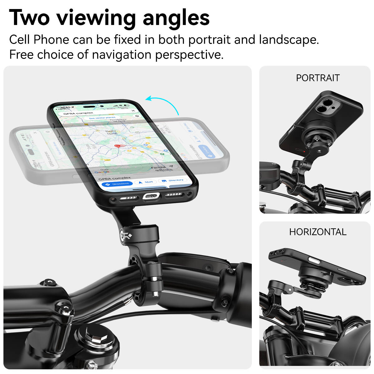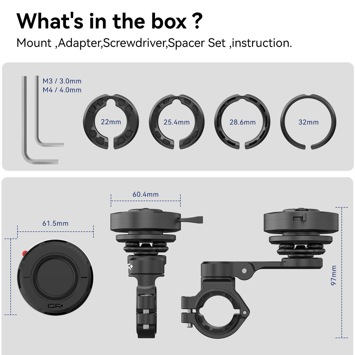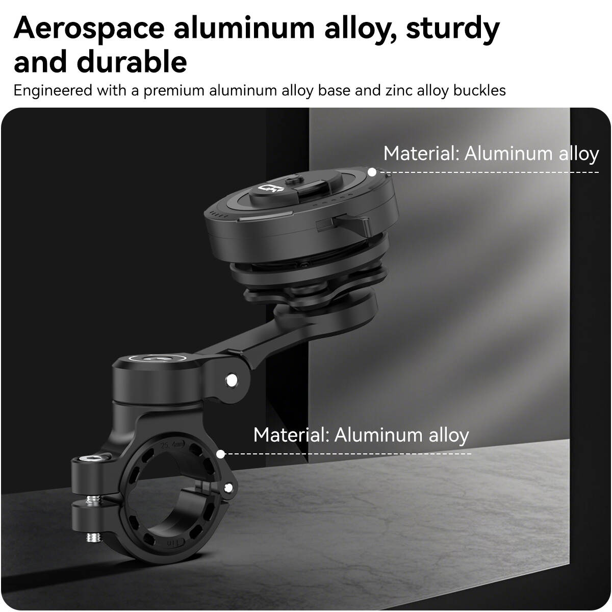 · 1-Sekunden-Einhand-Schnellverschluss, magnetische automatische Ausrichtung, Doppelverriegelung. · Schnellspannkern mit 360-Grad-Drehung, Halterung lässt sich horizontal um 360° und vertikal um 0–140° verstellen. · Vibrationsdämpfer PRO aus Metall. · Kompatibilität mit 22-32-mm-Mehrzweckrohren. · Universelle Schnittstelle. · Erfindungspatent.